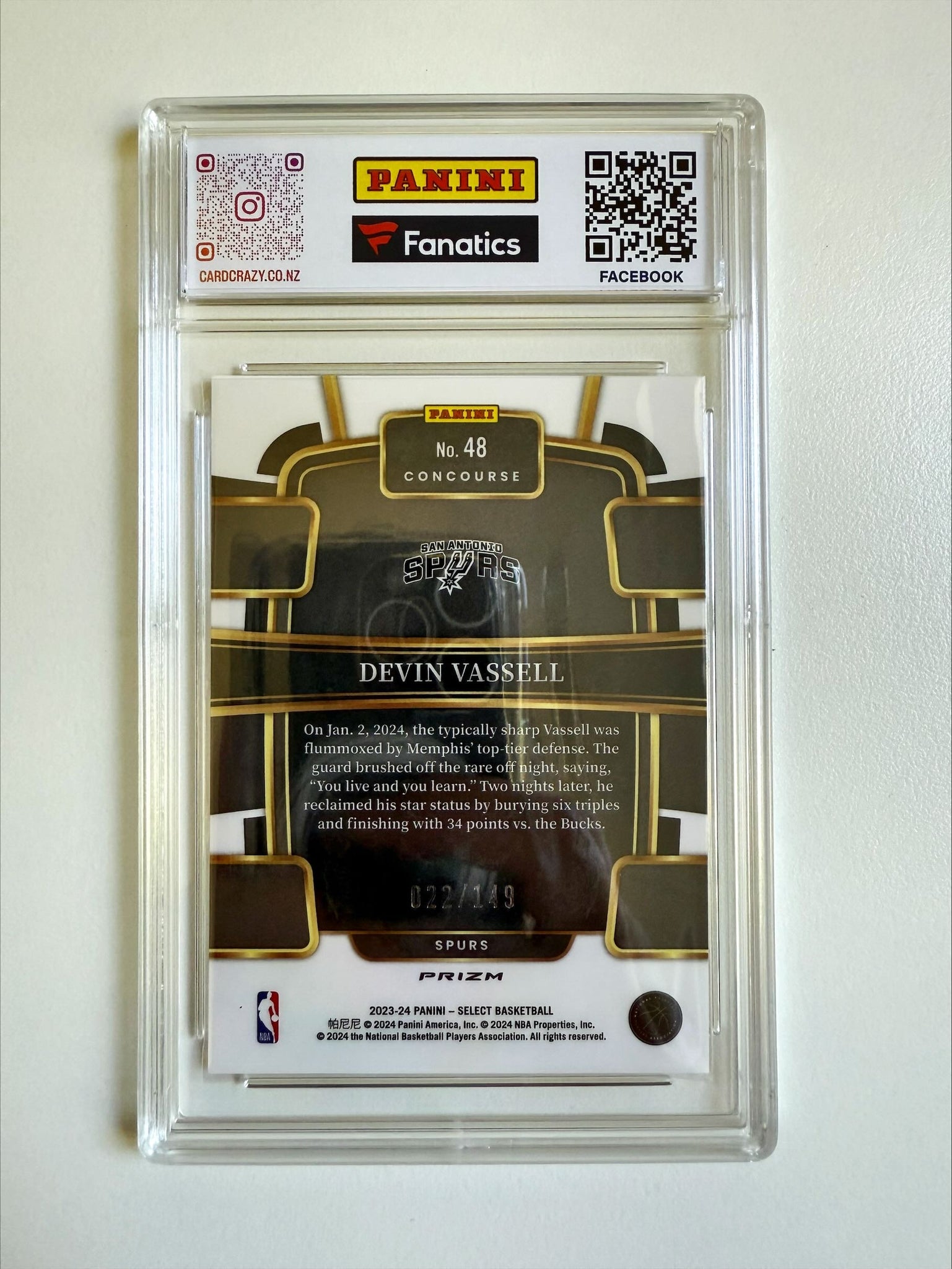 Devin Vassell (Spurs) - White 022/149 - Select BK 2023/24